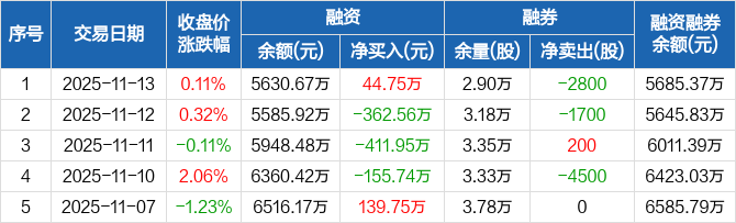 致欧科技:融资净买入44.75万元,融资余额5630.67万元(11-13)
