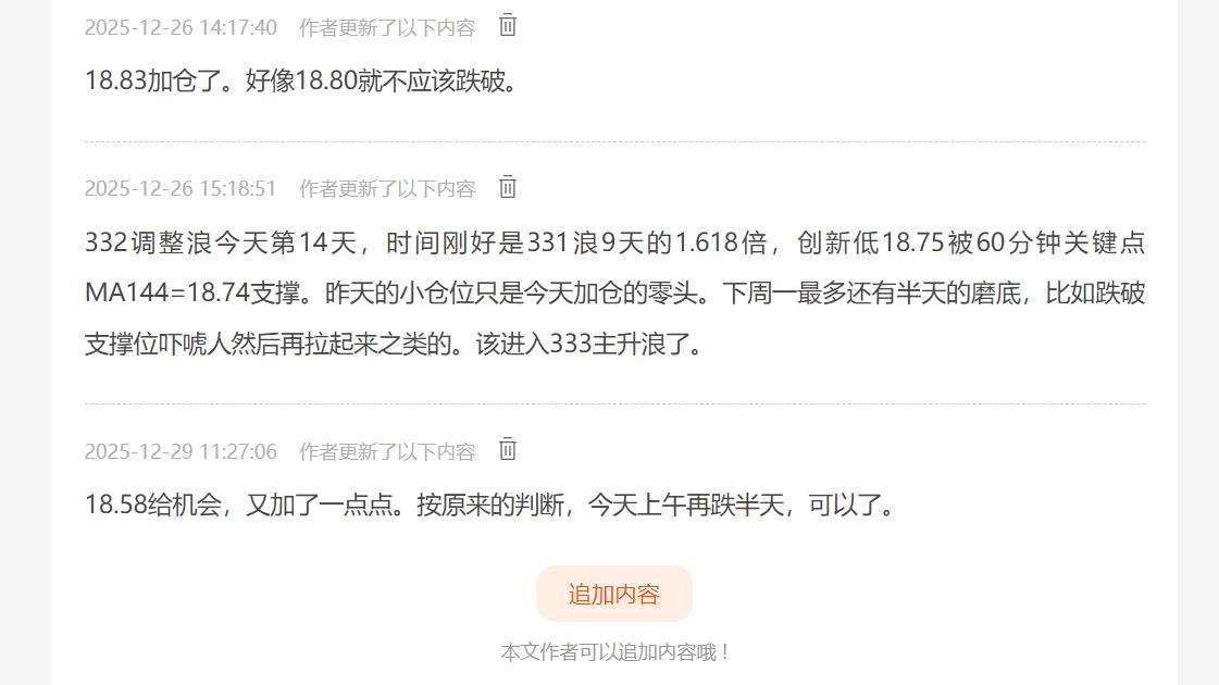 18.58给机会,又加了一点点。按原来的判断,今天上午再跌半天,可以了。