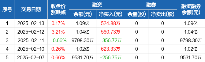 鼎泰高科:融资余额1.09亿元,创近一年新高(02-13)