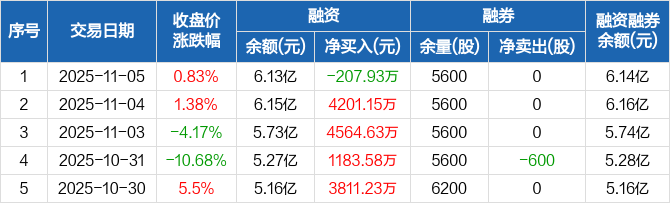 鼎泰高科:融资净偿还207.93万元,融资余额6.13亿元(11-05)