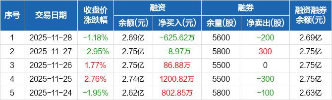 鼎泰高科:融资净偿还625.62万元,融资余额2.69亿元(11-28)