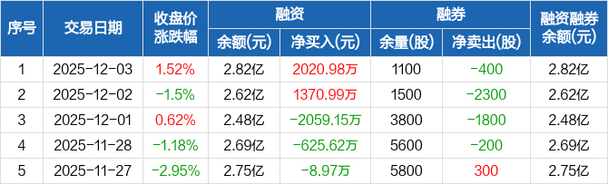 鼎泰高科:融资净买入2020.98万元,融资余额2.82亿元(12-03)