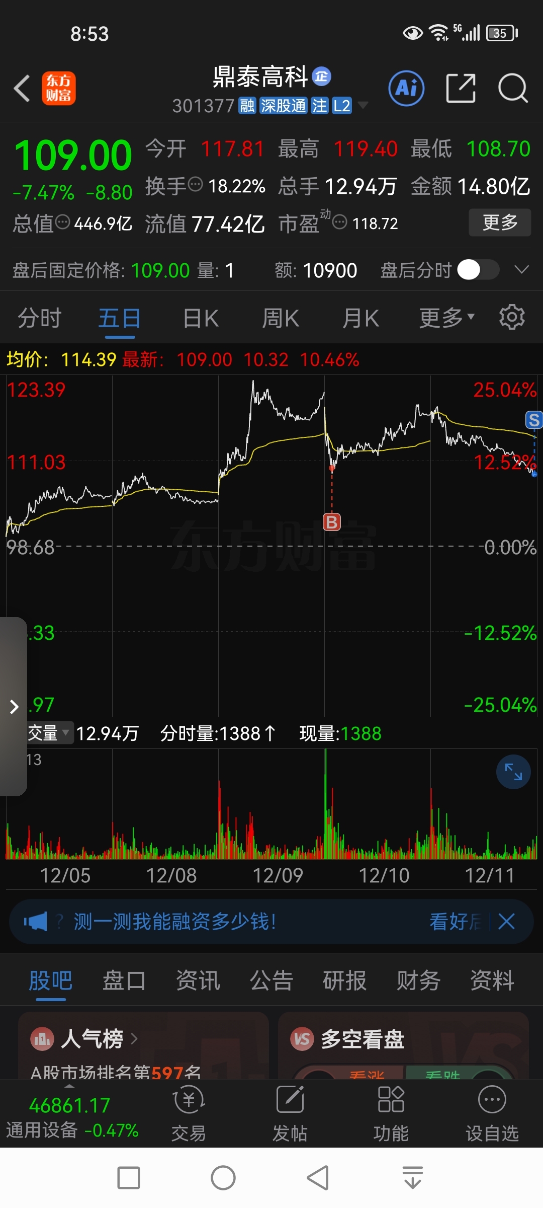 $鼎泰高科(SZ301377)$ 亏劳资一块钱走了,明天下杀再进.