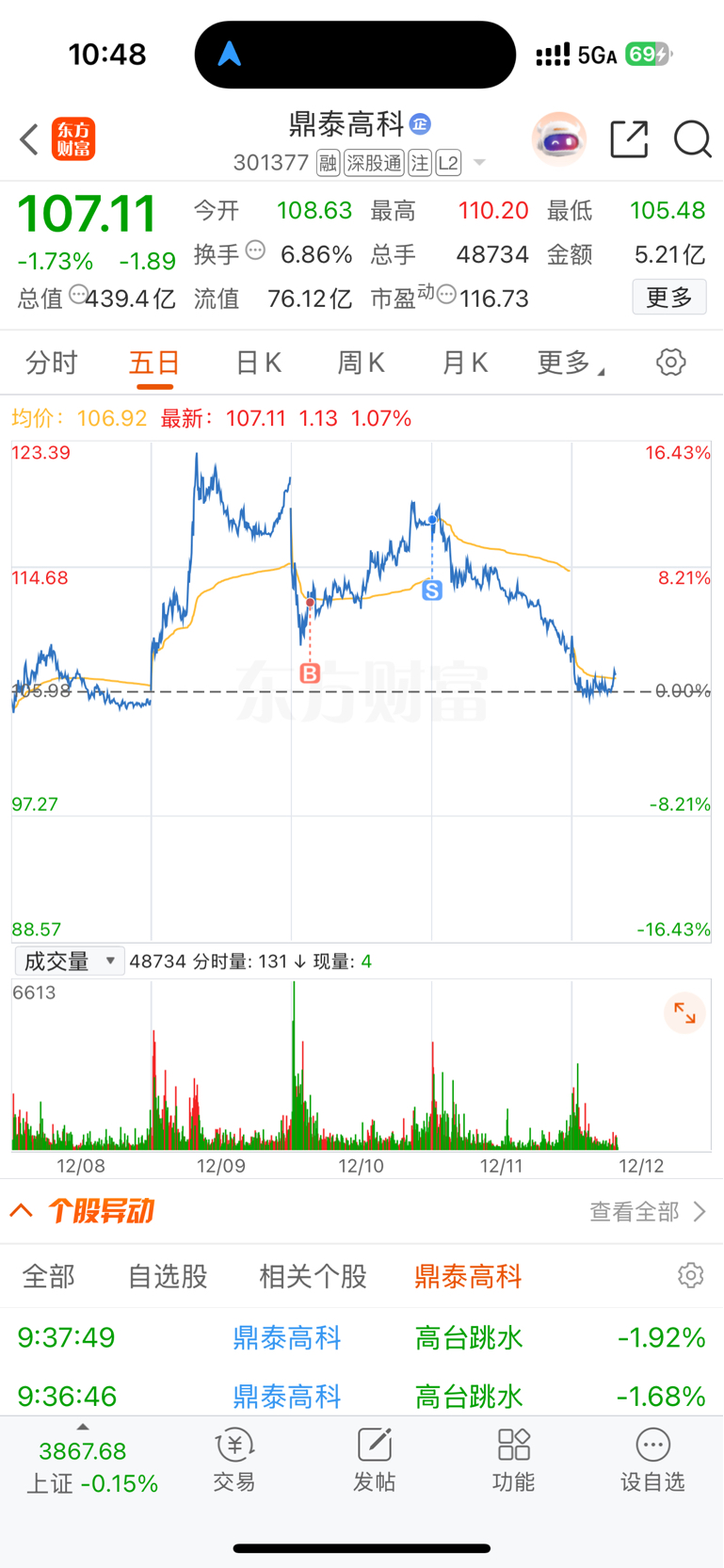 $鼎泰高科(SZ301377)$ 垃圾,差点被套牢