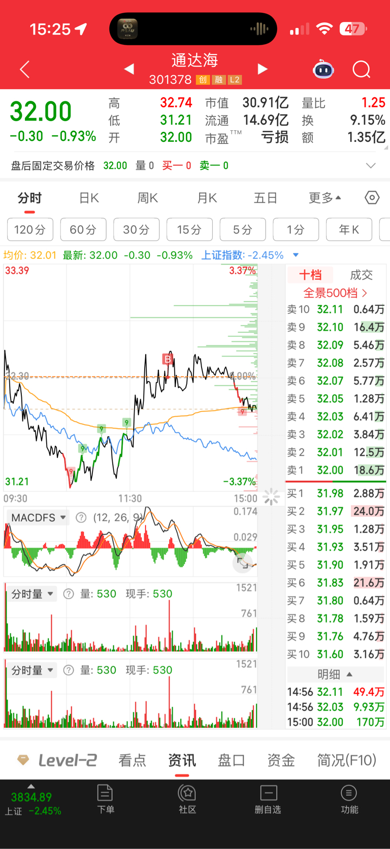 $通达海(SZ301378)$ 周一有无机会做个正t?