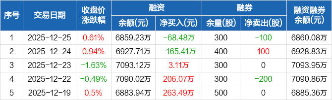 通达海:融资净偿还68.48万元,融资余额6859.23万元(12-25)