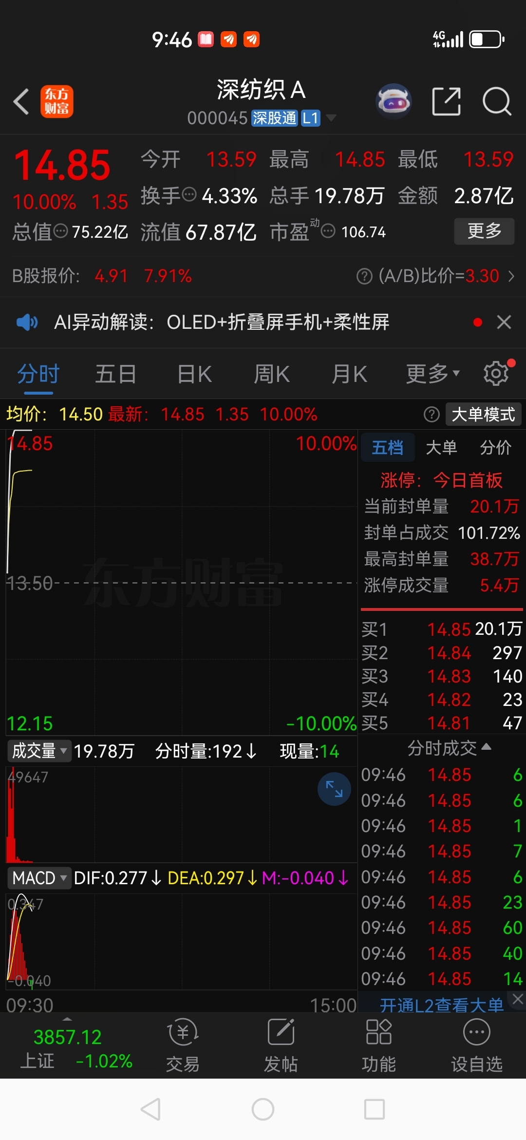 调仓了,不陪你玩了,亏了1毛钱的本,早上应果断介入,深纺织
