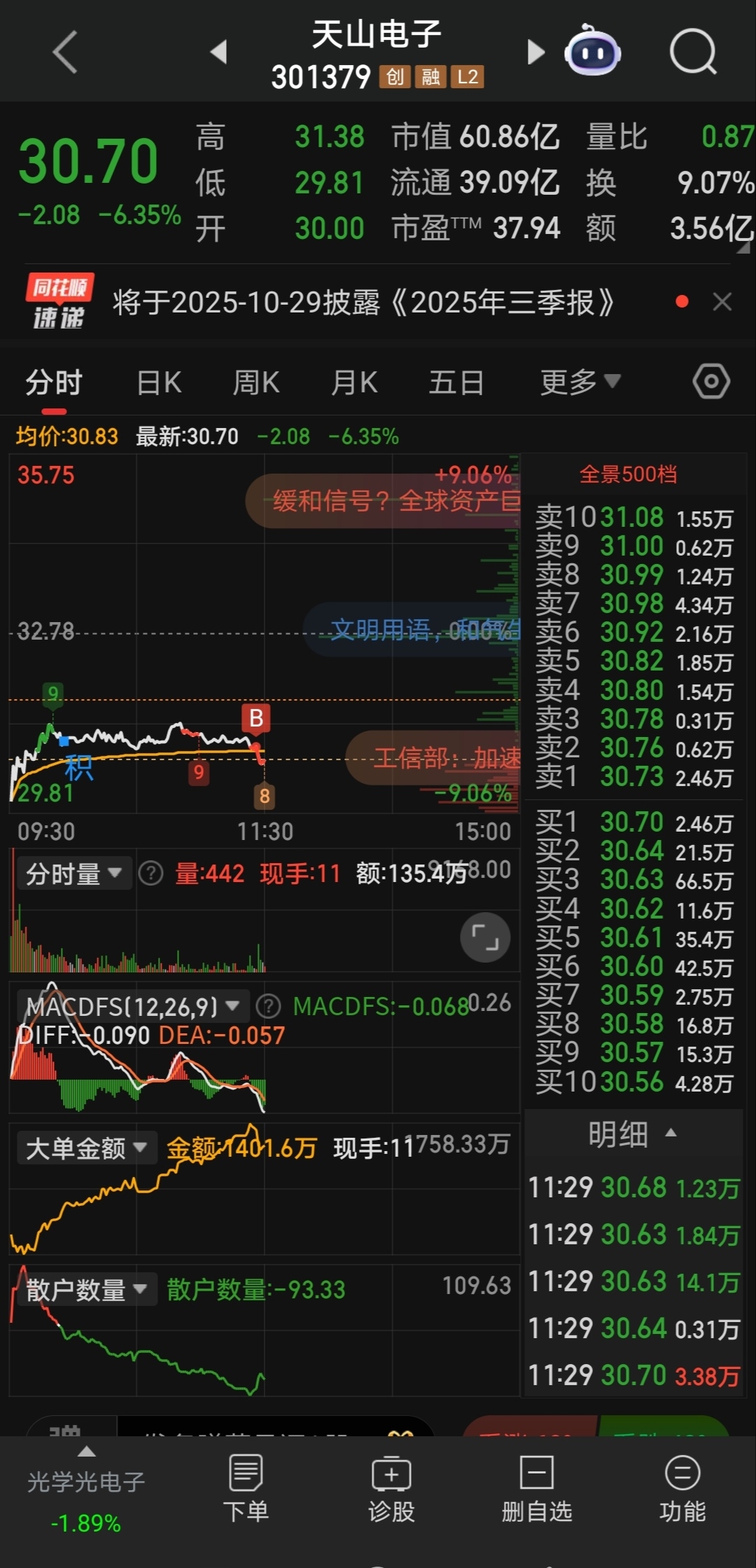 $天山电子(SZ301379)$ 上周尾盘出了,不知道这个买点怎么样,明后两天有没有个反弹,如果明天再跌择机加仓。有利润,布局存储芯片,高看一眼。