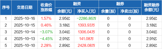 天山电子:融资净偿还2286.86万元,融资余额2.95亿元(10-16)