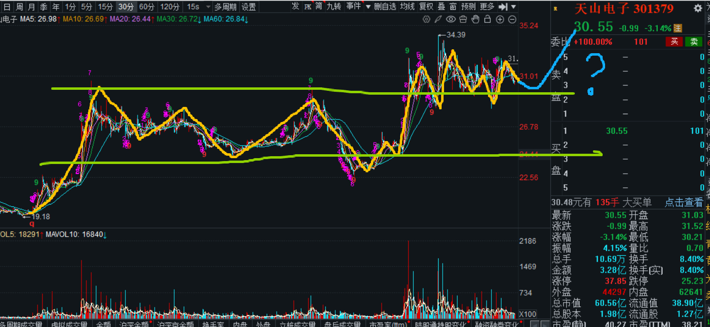 $天山电子(SZ301379)$ 也基本上到位了,明天我要拉了。开启上涨之路。别再有gou出来了