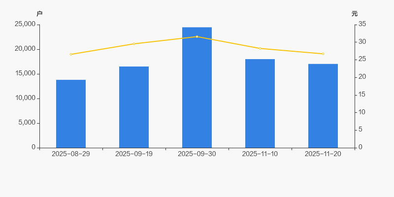 2025年8月29日至今,公司股东户数显著增长,区间涨幅为23.43%。2025年8月29日至2025年11月20日区间股价上涨0.56%。