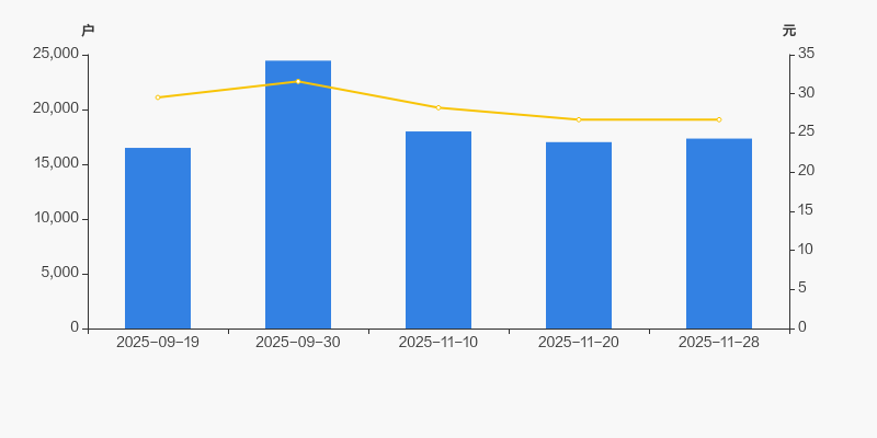2025年9月19日至今,公司股东户数有所增长,区间涨幅为5.14%。2025年9月19日至2025年11月28日区间股价下降9.61%。