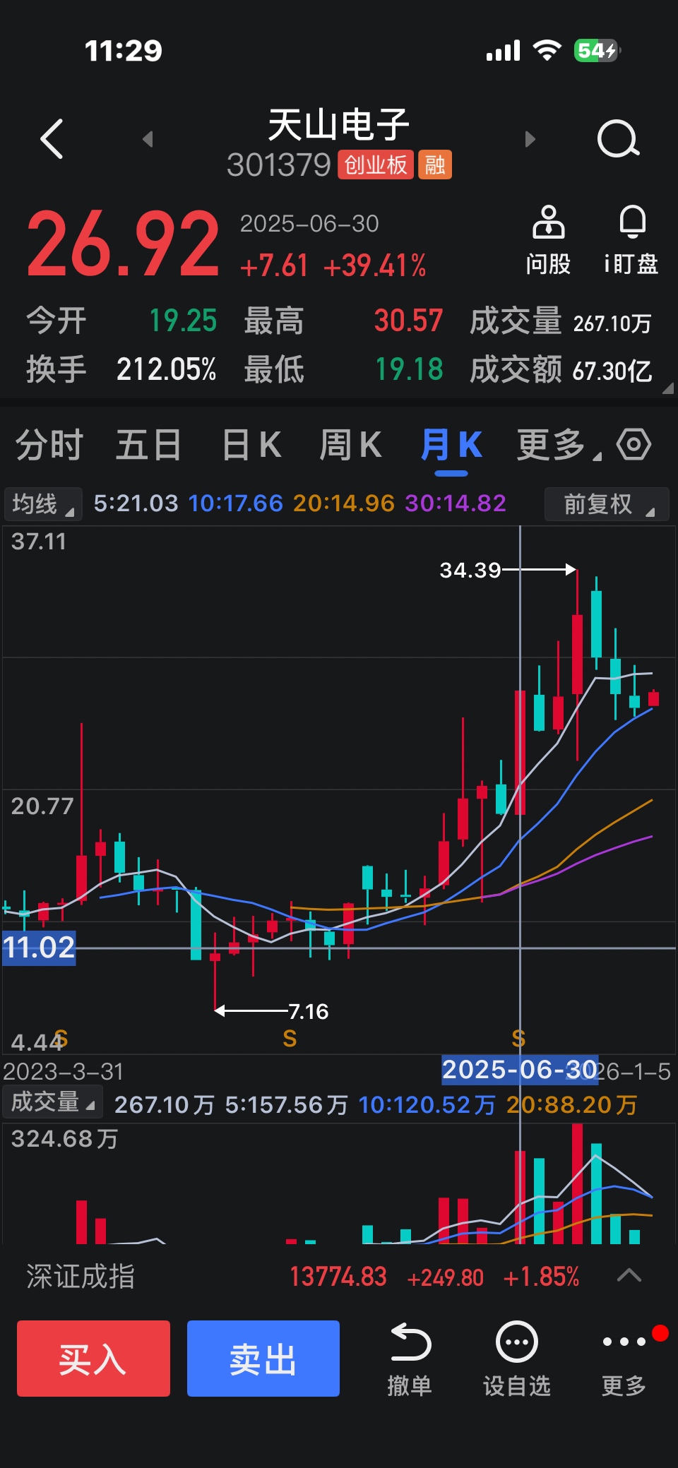 $天山电子(SZ301379)$ 对比大盘月线,看天山电子是多么垃圾。