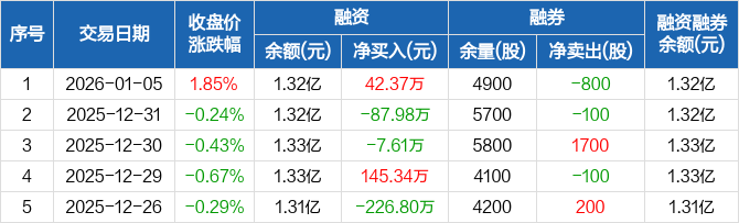 赛维时代:融资净买入42.37万元,融资余额1.32亿元(01-05)
