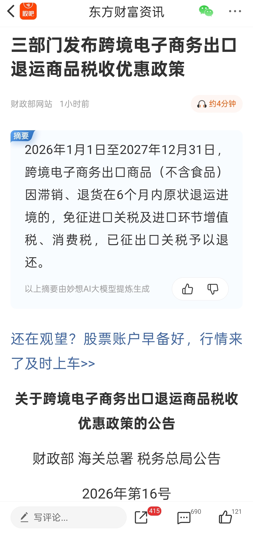 郑重声明:用户在财富号/股吧/博客等社区发表的所有信息(包括但不限于文字、视频、音频、数据及图表)仅代表个人观点,与本网站立场无关,不对您构成任何投资建议,据此操作风险自担。请勿相信代客理财、免费荐股和炒股培训等宣传内容,远离非法证券活动。请勿添加发言用户的手机号码、公众号、微博、微信及QQ等信息,谨防上当受骗!