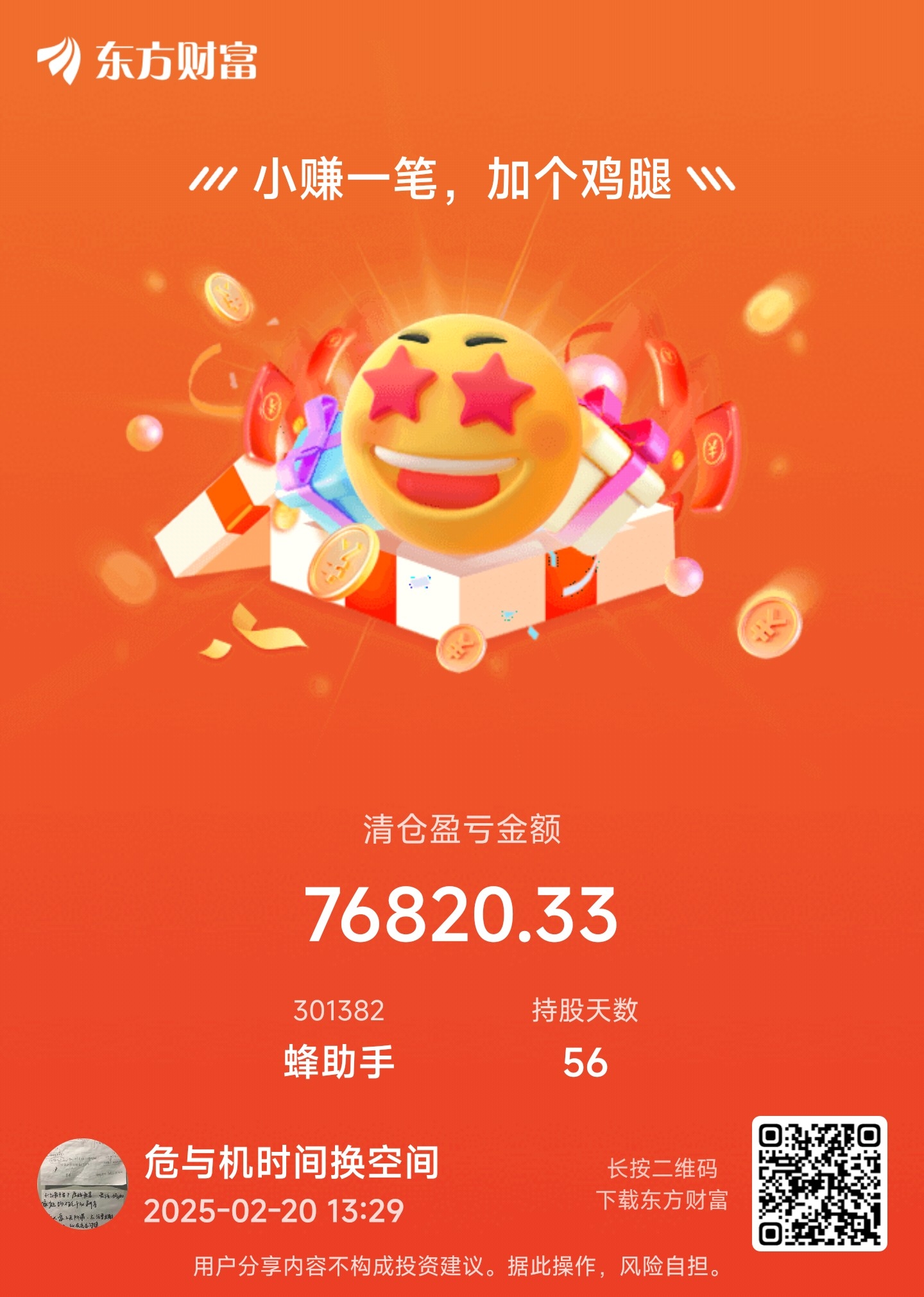 温馨提示: 1.根据《证券法》规定,禁止编造、传播虚假信息或者误导性信息,扰乱证券市场;2.用户在本社区发表的所有资料、言论等仅代表个人观点,与本网站立场无关,不对您构成任何投资建议。用户应基于自己的独立判断,自行决定证券投资并承担相应风险。《东方财富社区管理规定》