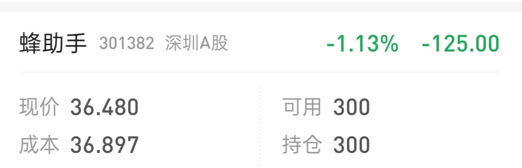 蜂助手这震荡确实剧烈。高抛低吸还能挣点钱。我三百股不动了。从赚六百元到亏两百元。