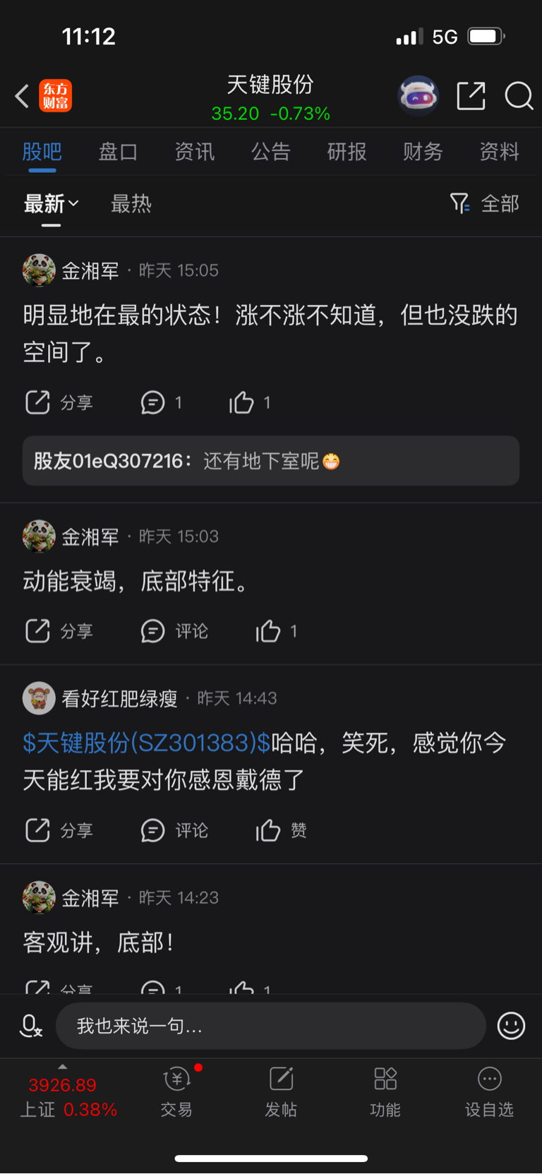 $天键股份(SZ301383)$ 这个金元宝8804(金湘军)是不是啊,昨天喊底部,今天又喊买进去的都是,在这忽悠人。