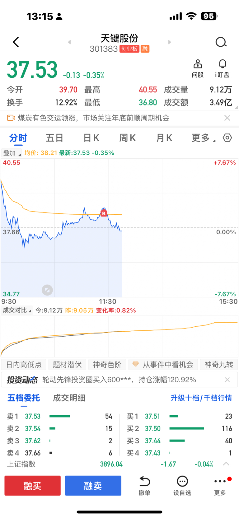 $天键股份(SZ301383)$ b被我买崩了不好意思