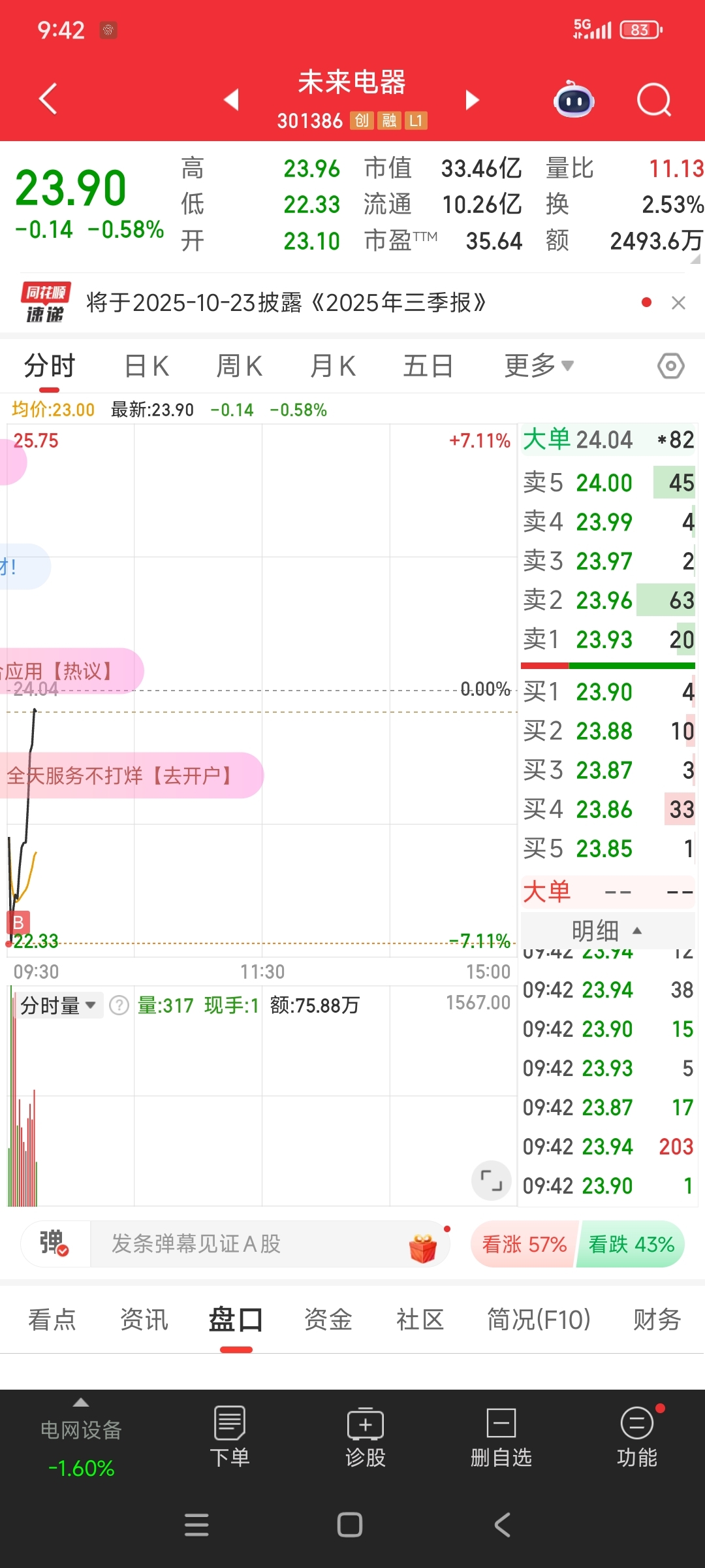 $未来电器(SZ301386)$ 我晕啊,就成交一笔吗。