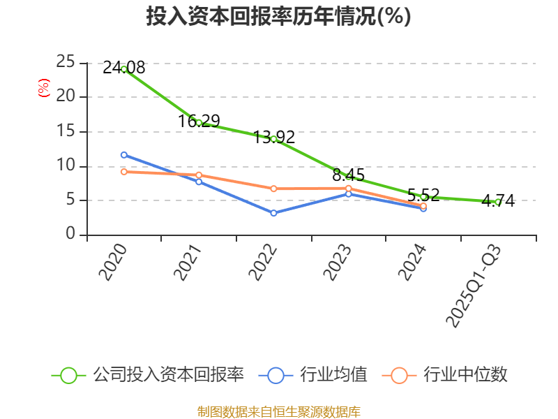 盈利能力方面, 2025年前三季度公司加权平均净资产收益率为4.78%,同比上升0.44个百分点。公司2025年前三季度投入资本回报率为4.74%,较上年同期上升0.86个百分点。