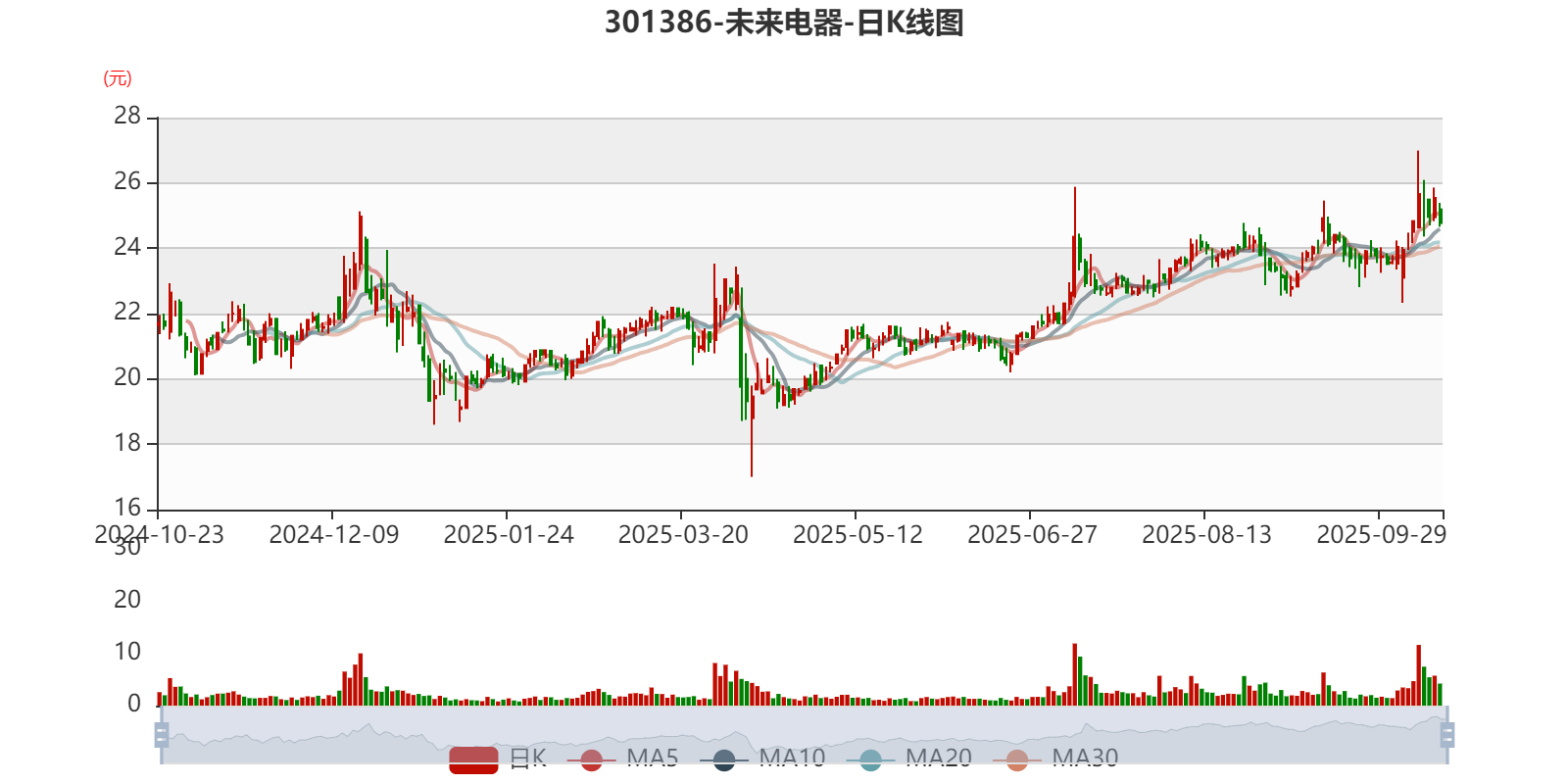 以10月22日收盘价计算,未来电器目前市盈率(TTM)约为35.77倍,市净率(LF)约2.34倍,市销率(TTM)约6.47倍。