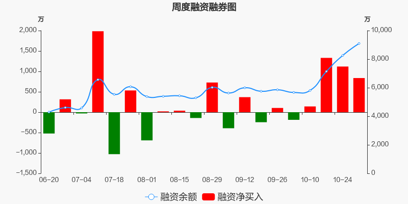未来电器本周(2025/10/27-2025/10/31)累计跌幅达0.39%,截至10月31日最新股价报收25.40元。从增量上来看,10月27日至10月30日融资买入交易规模8626.24万元,融资偿还规模7789.38万元,期内融资净买入836.86万元。从存量上来看,截止11月2日,未来电器融资融券余额9097.48万元,其中融资余额规模9097.48万元,融券余额规模0元。