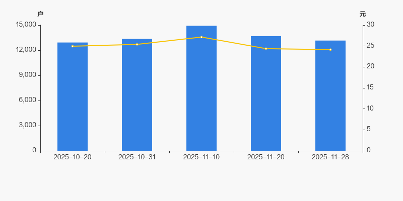 2025年10月20日至今,公司股东户数有所增长,区间涨幅为1.79%。2025年10月20日至2025年11月28日区间股价下降3.29%。