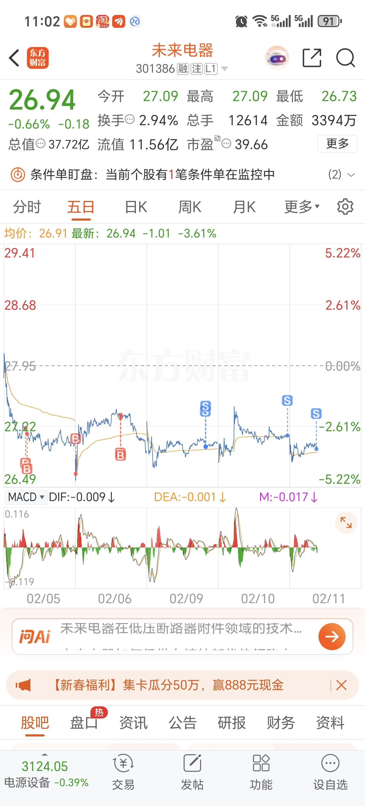 $未来电器(SZ301386)$ 彻底清仓,持有一个月,亏几百。此有此理