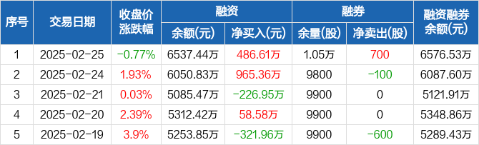 光大同创:融资净买入486.61万元,融资余额6537.44万元(02-25)