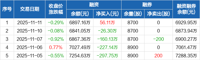 光大同创:融资净买入56.11万元,融资余额6897.16万元(11-11)