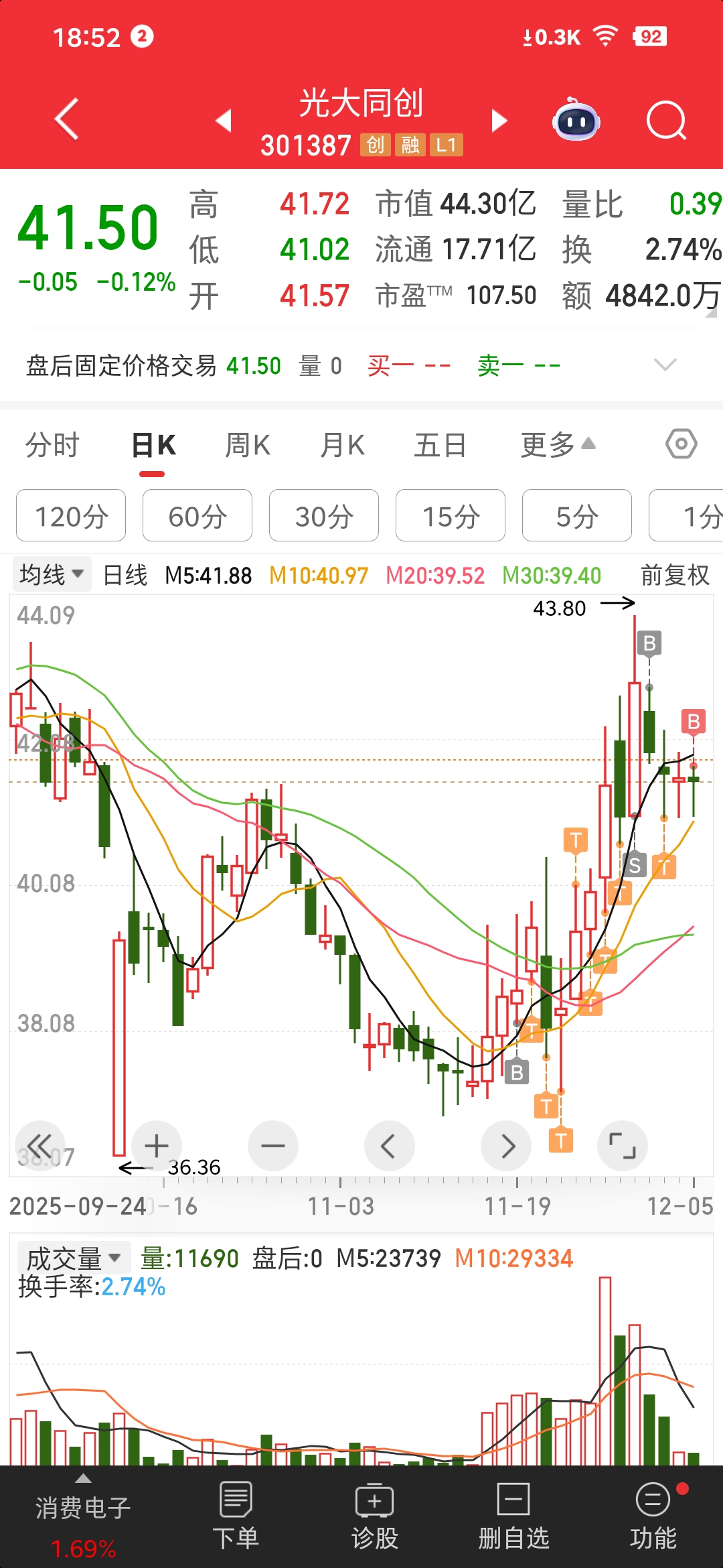 $光大同创(SZ301387)$ 连着画了三个十字星,三天收盘正负一毛,周线还是红的一个来点,主力这是玩泥巴,一个多点里震,小散都被你来回搓,想拿住你真的不容易,只想搞点烟钱也如此难吗?