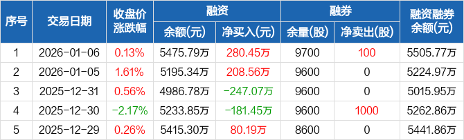 欣灵电气:融资净买入280.45万元,融资余额5475.79万元(01-06)