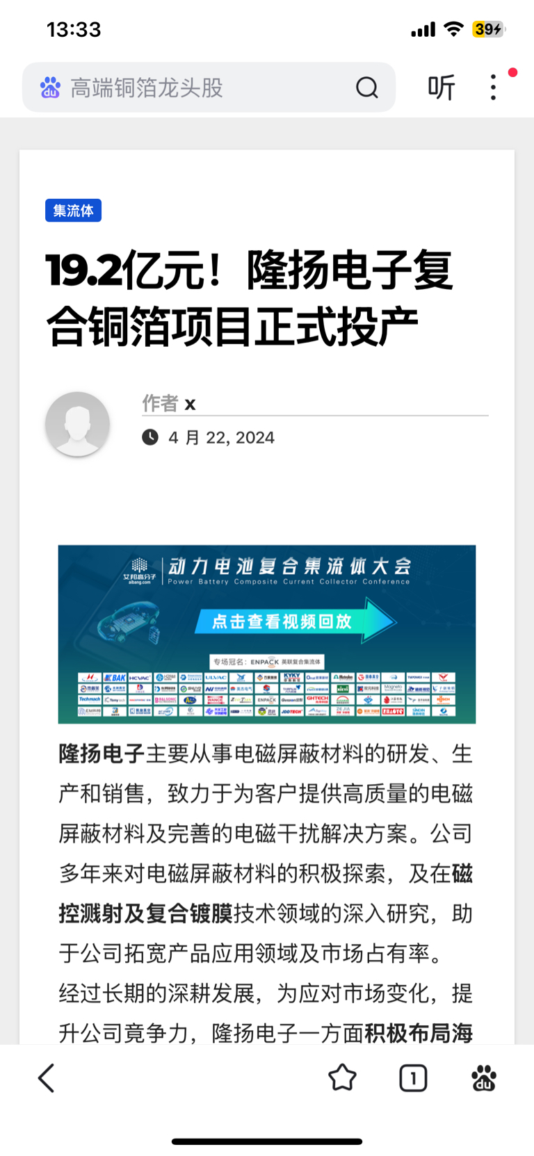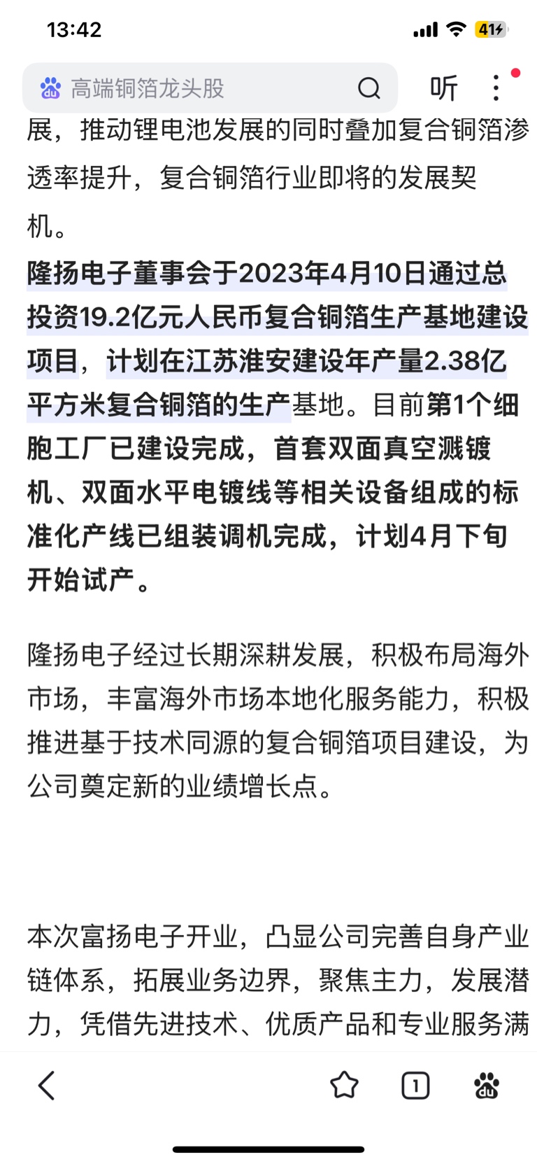文章中去年四月已经安装调机完成开始试生产了!