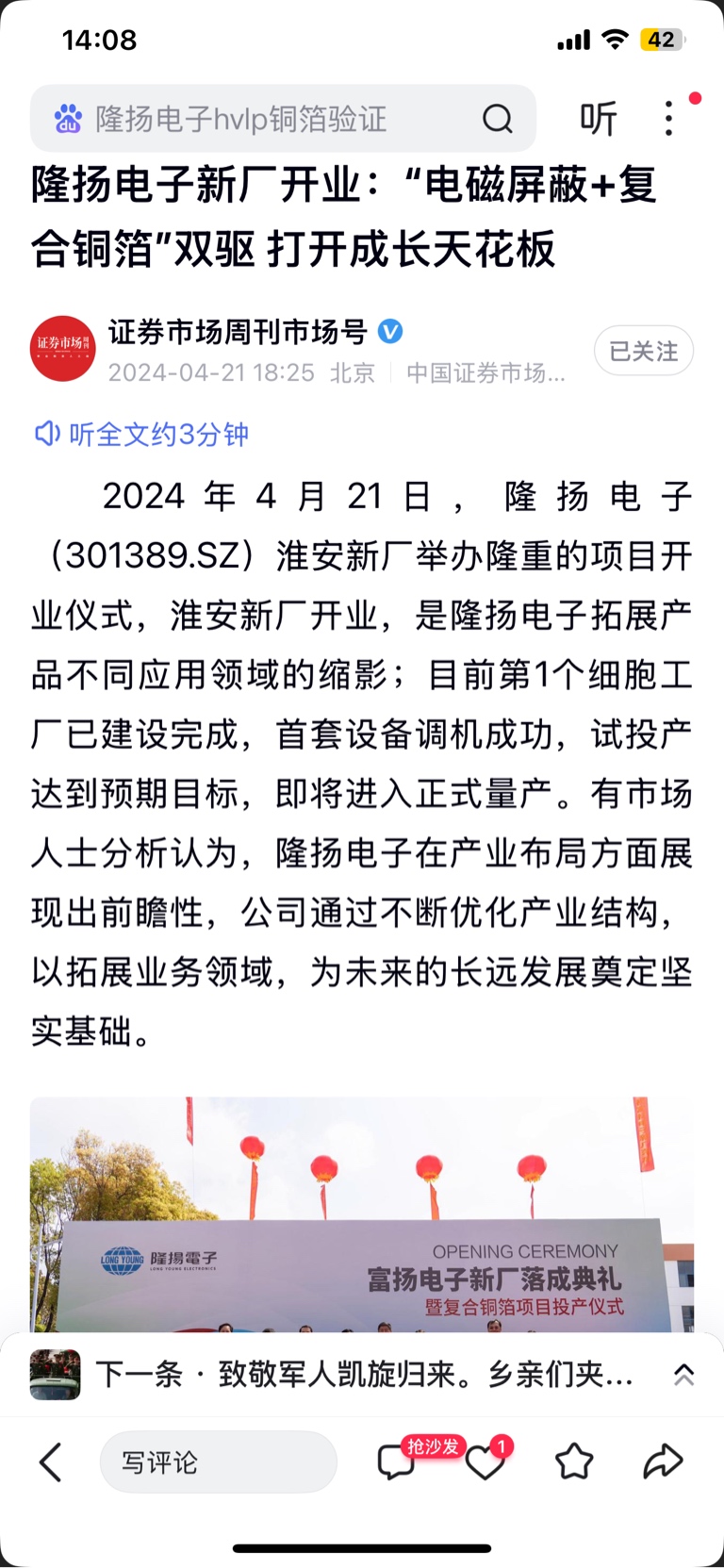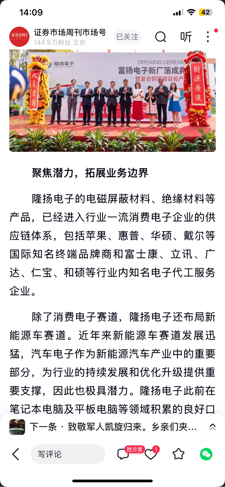 $隆扬电子(SZ301389)$ 董秘出来说几句!