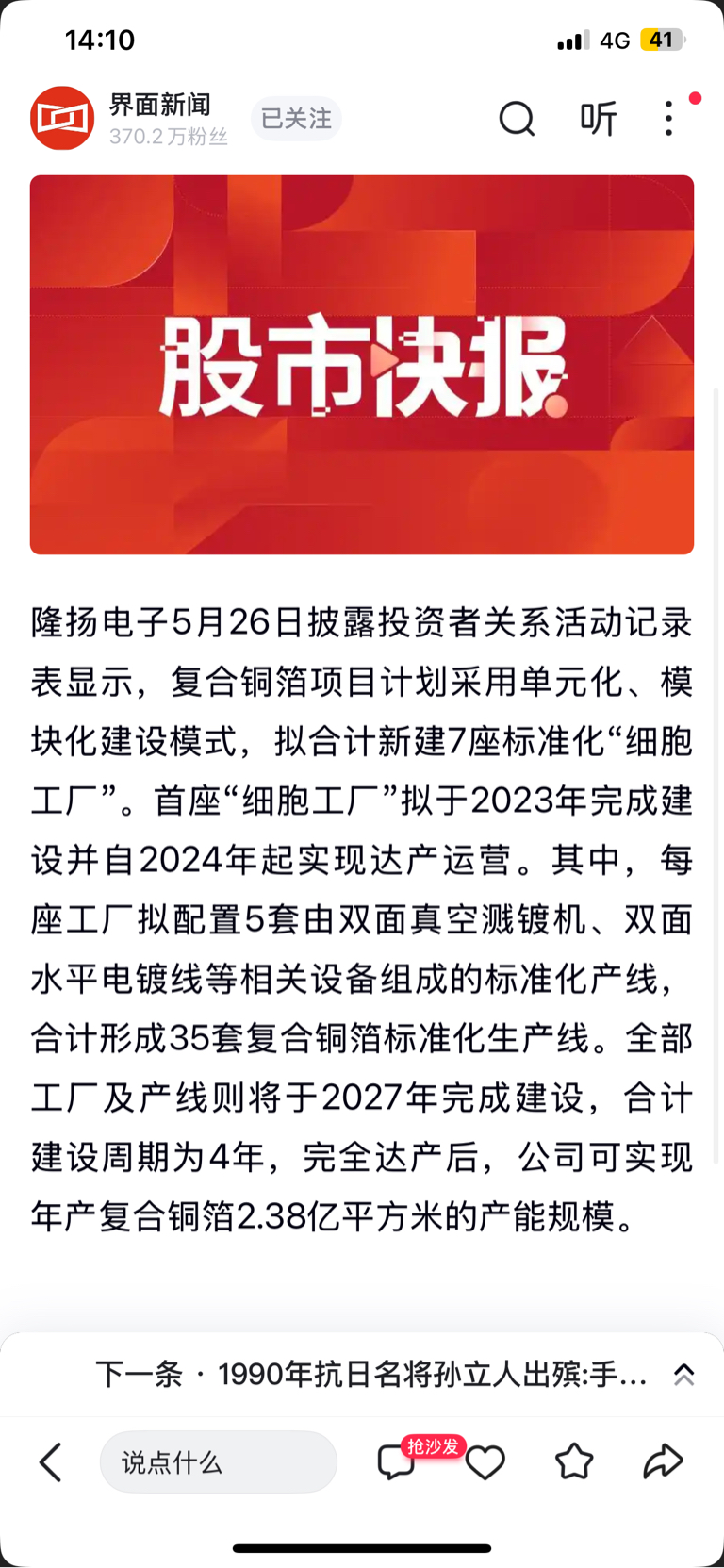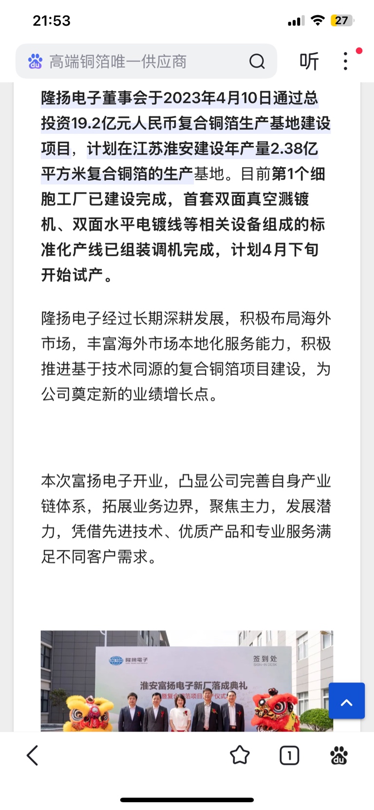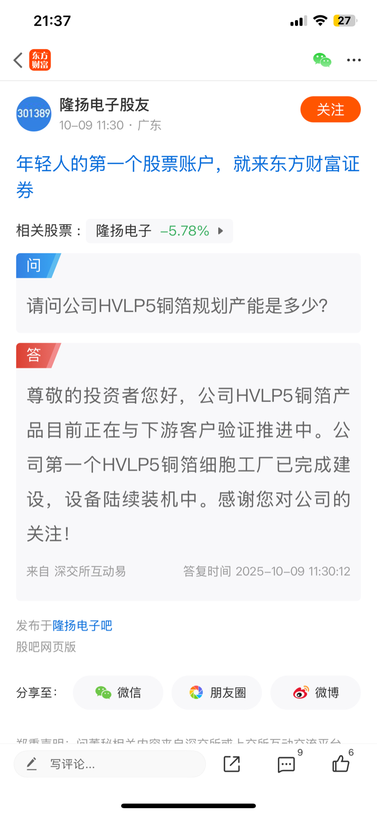 $隆扬电子(SZ301389)$ 2024年5月26号已明确告知投资者细胞工厂已达产运营!到了今天却说还在装机?哪句话是真的啊?亲爱的董秘?