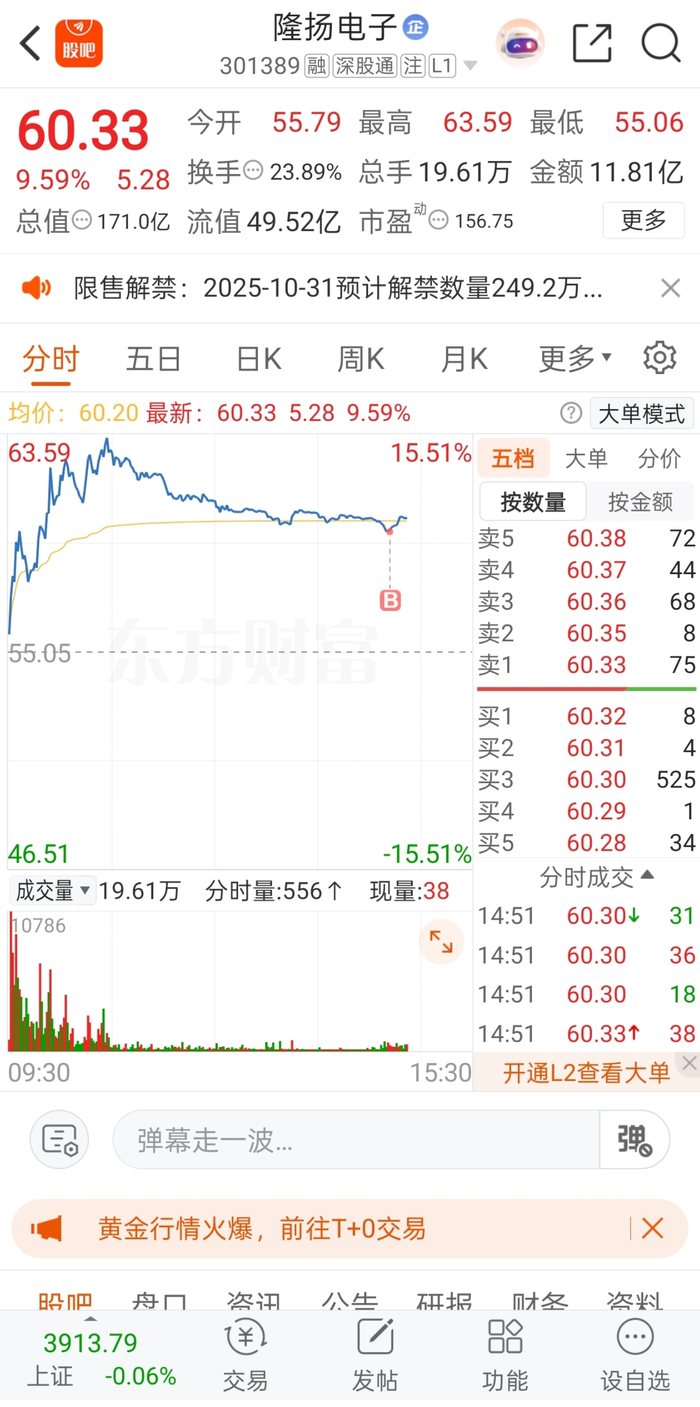尾盘选择介入$隆扬电子(SZ301389)$ 尝试一波