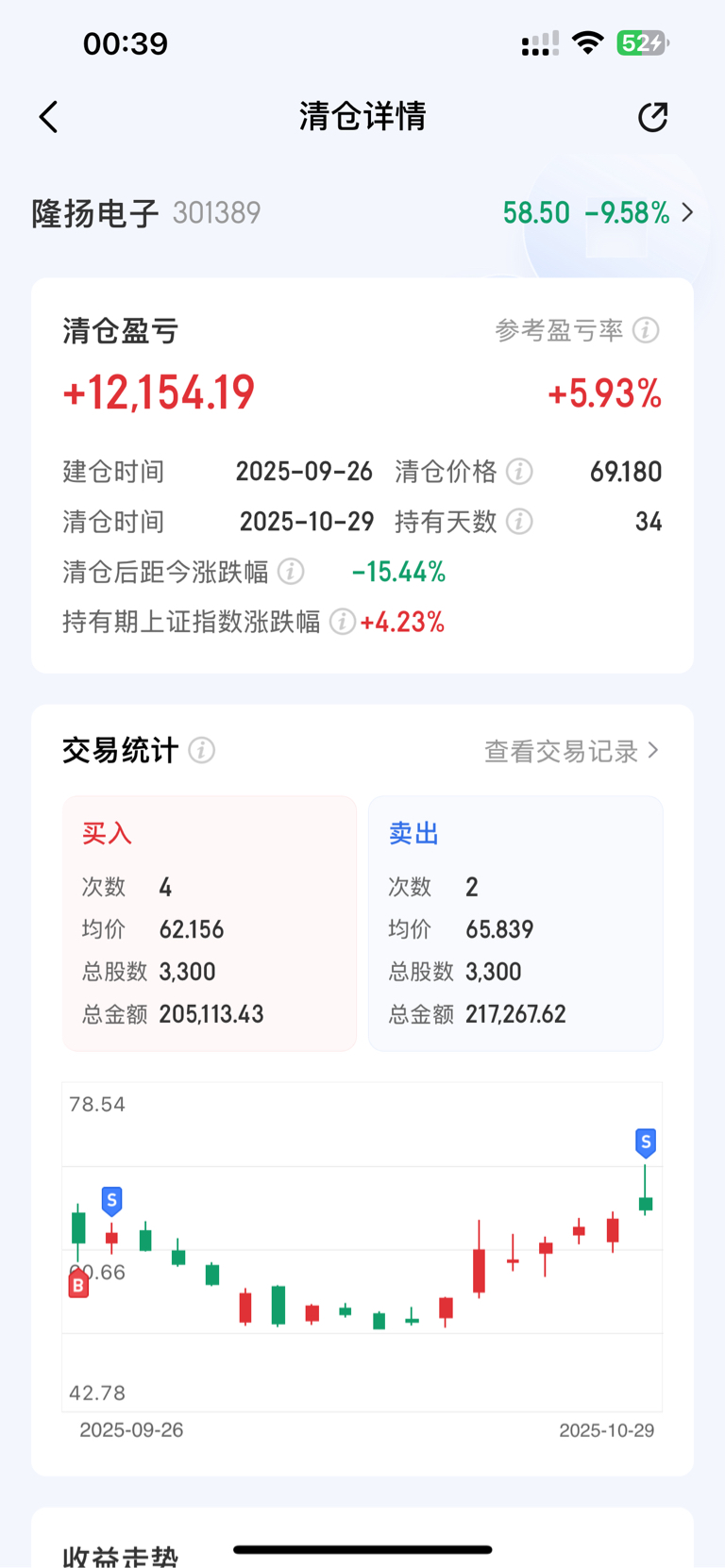 $隆扬电子(SZ301389)$ 昨天刚逃的顶,没想到今天跌的这么惨,没忍住,尾盘又买了回来,十几个点的T,不信你会给我吃干净