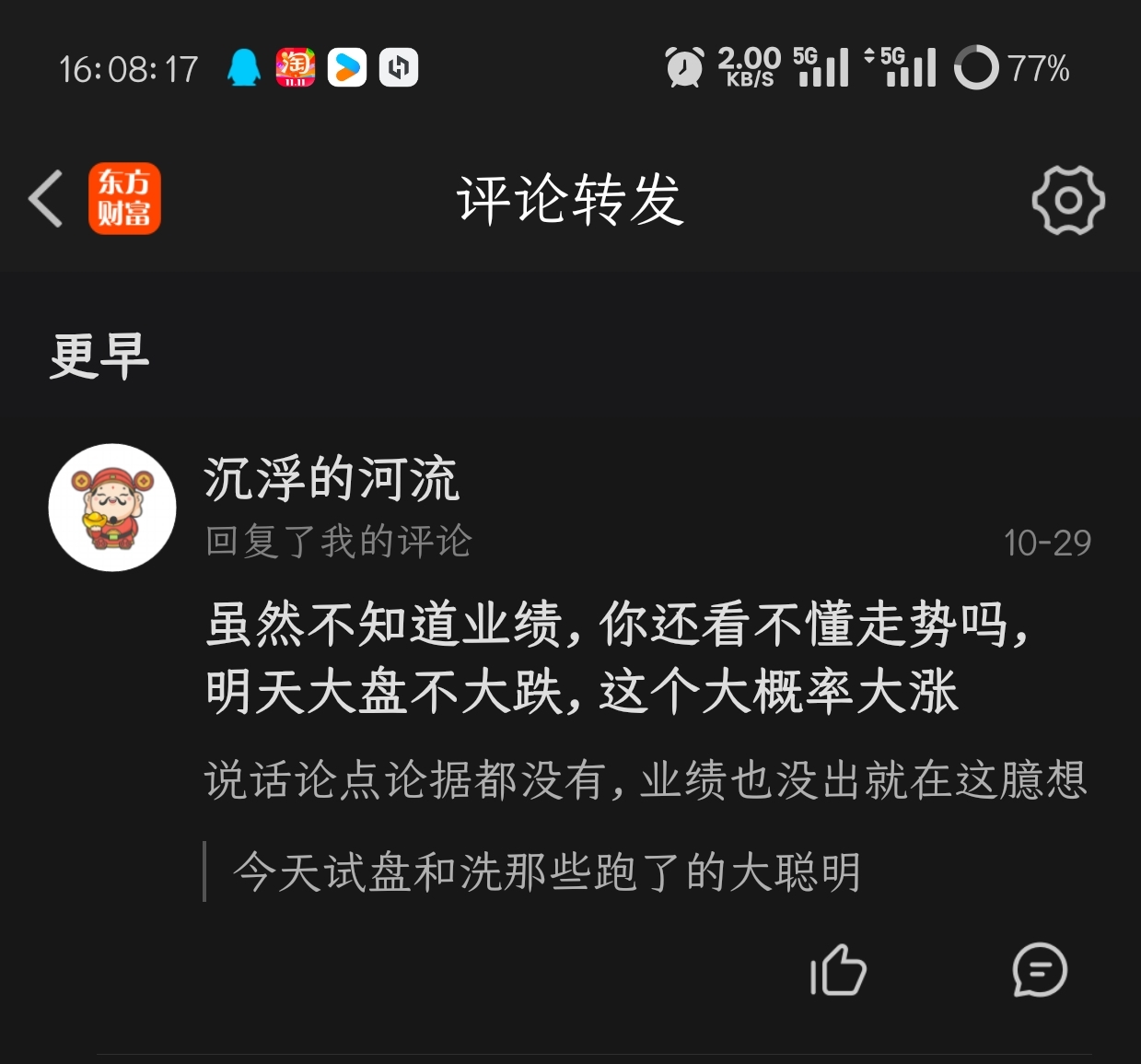 刚看到这个韭菜回复我,现在还删了评论,笑死我了,应该亏麻了吧