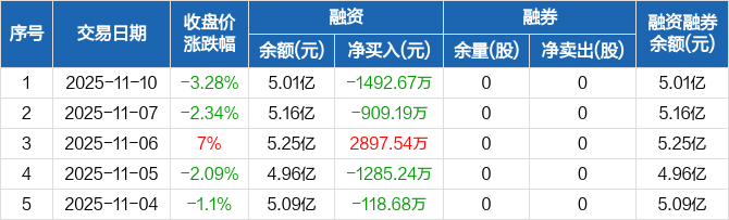 隆扬电子:融资净偿还1492.67万元,融资余额5.01亿元(11-10)