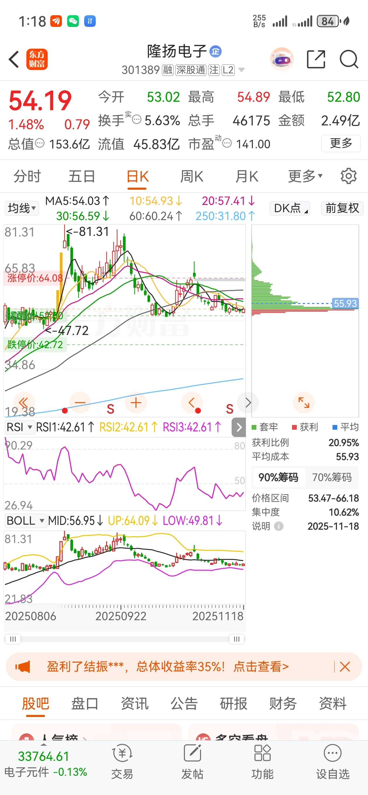 $隆扬电子(SZ301389)$ 筹码分布不断下移,3个交易日从57多到55,高位割肉的家人越来越多了!好事!