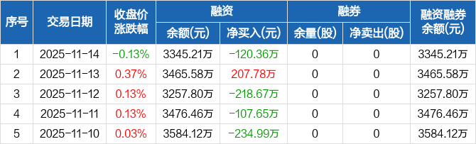 经纬股份:融资净偿还120.36万元,融资余额3345.21万元(11-14)