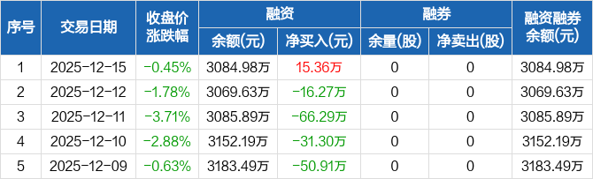 经纬股份:融资净买入15.36万元,融资余额3084.98万元(12-15)