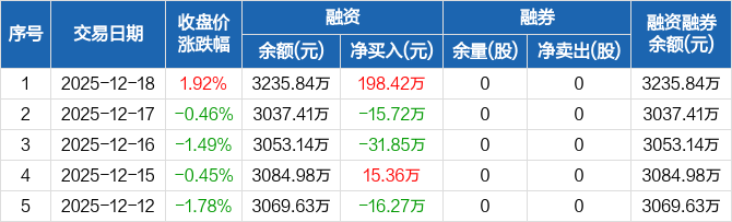 经纬股份:融资净买入198.42万元,融资余额3235.84万元(12-18)