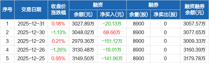 经纬股份:融资净偿还20.13万元,融资余额3027.89万元(12-31)