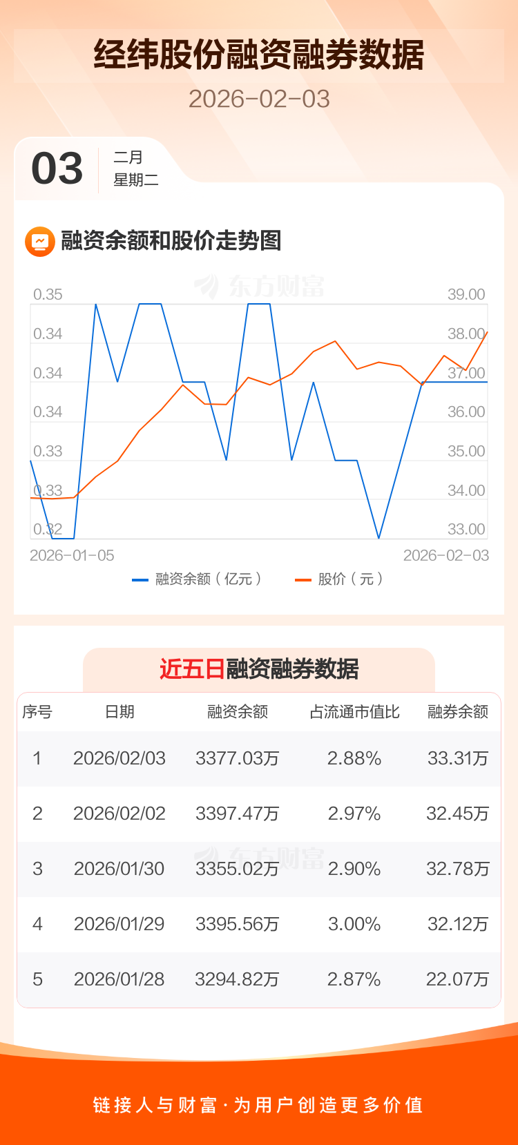 经纬股份:融资净偿还20.45万元,融资余额3377.03万元