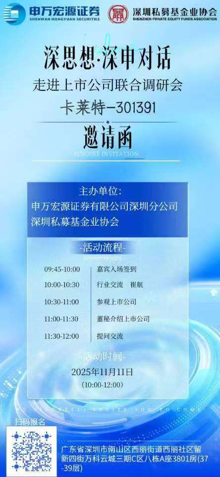 $卡莱特(SZ301391)$ 一会去交流,飞
