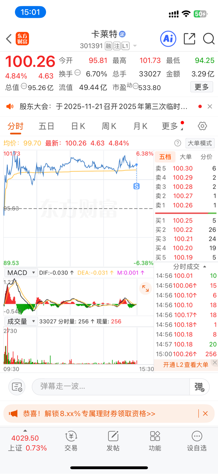 $卡莱特(SZ301391)$ 走了 !过几天再来