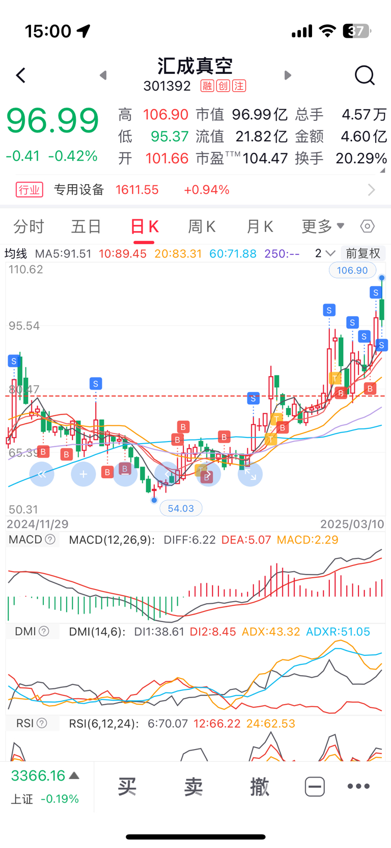 106没走尾盘96走了!留下发财一个多月两万赚五万多感谢短期不来了以我的经验明天