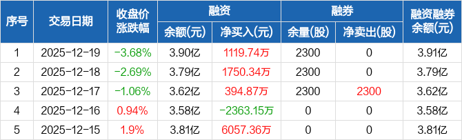 汇成真空:连续3日融资净买入累计3264.95万元(12-19)